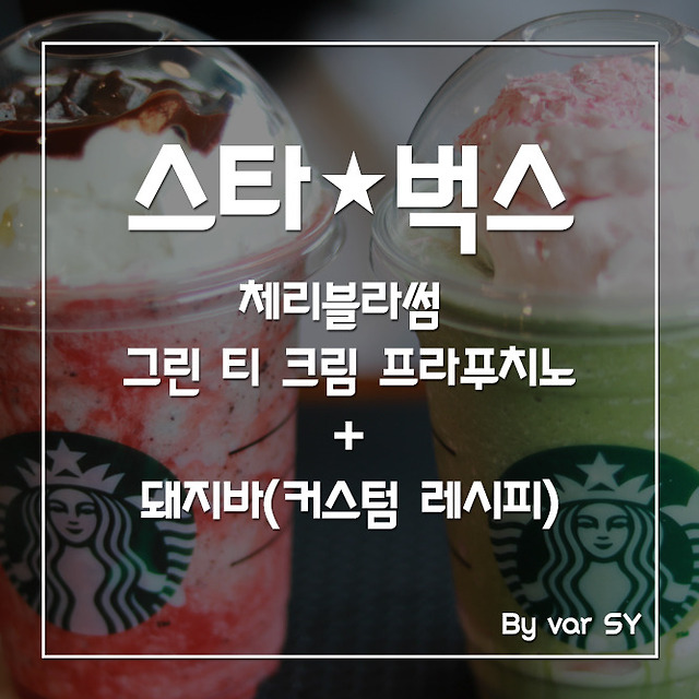 스타벅스 체리블라썸 그린티 크림 프라푸치노 + 돼지바를 먹어보았다.